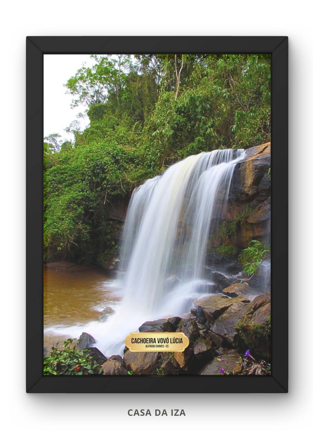 Leve a beleza do interior capixaba para a sua decoração com este Quadro Decorativo Cachoeira Vovó Lúcia – Alfredo Chaves/ES, que estampa uma foto das duas quedas d’água mais famosas da região, cercadas por muito verde e águas cristalinas. Perfeito para salas, home office, pousadas e espaços de descanso, é a escolha ideal para quem aprecia natureza, cachoeiras e o turismo de aventura no Espírito Santo.