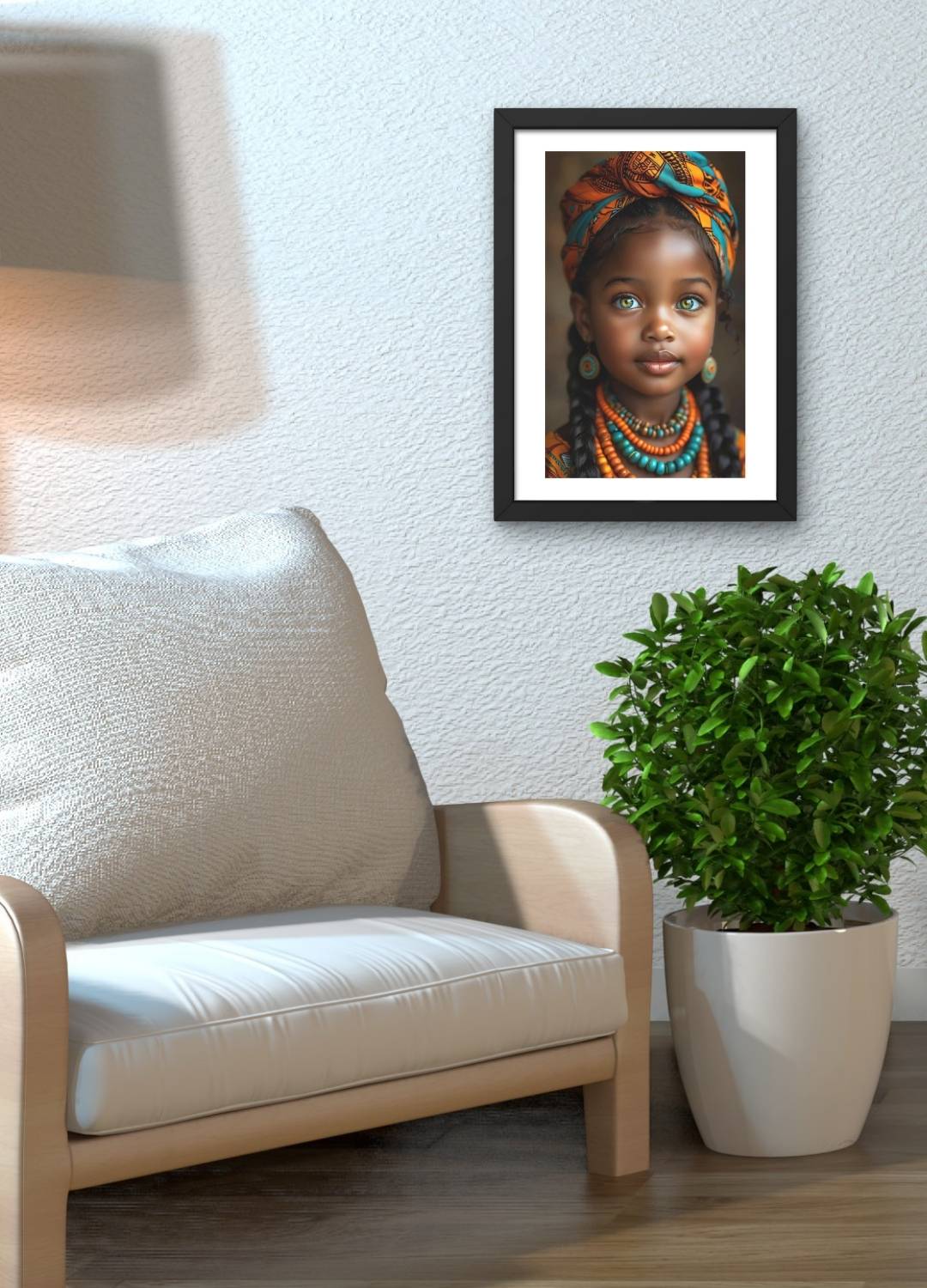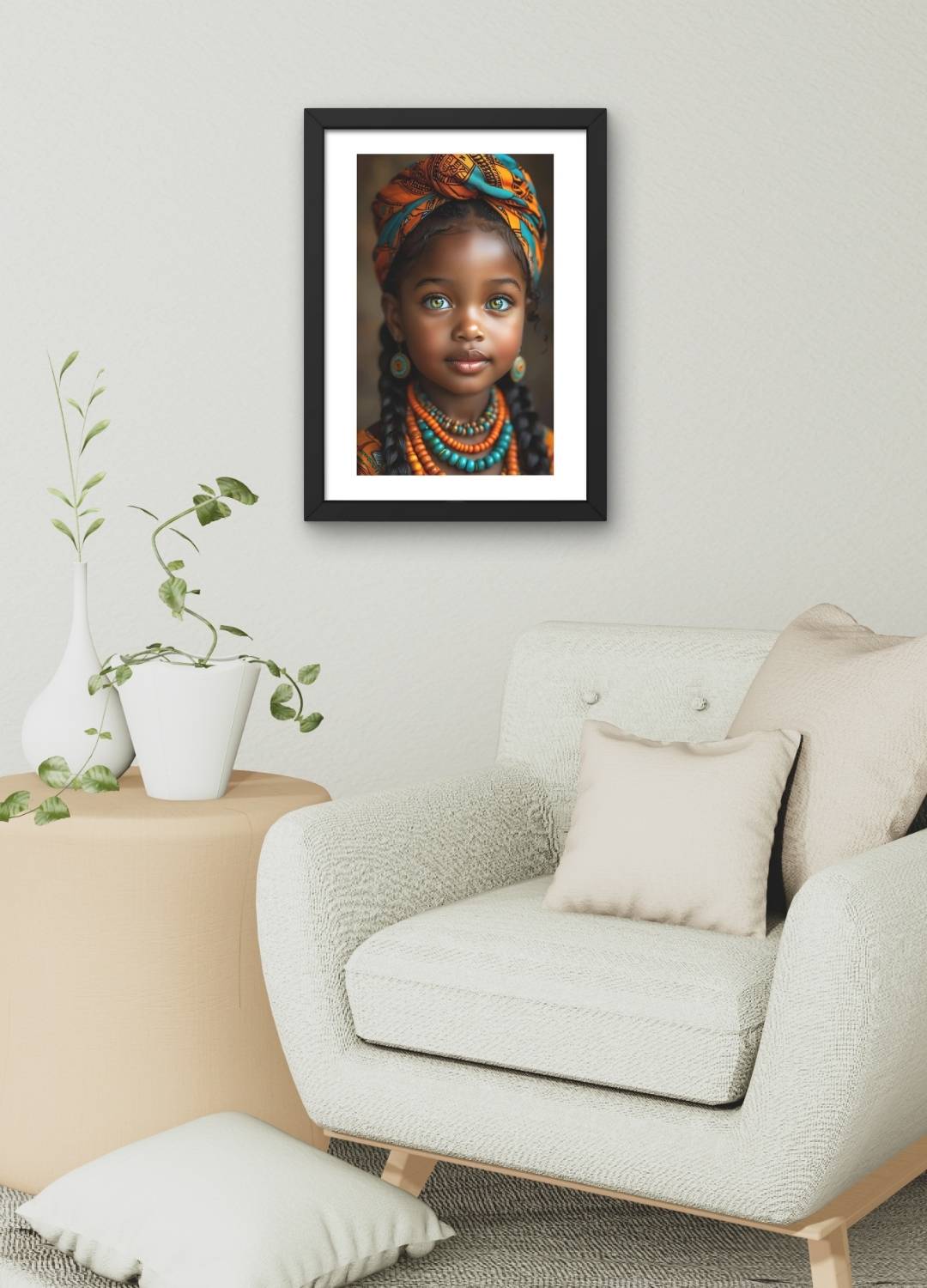Destaque sua parede com este Quadro Decorativo Criança – Olhar Marcante, que une cores vibrantes, detalhes étnicos e uma expressão intensa cheia de personalidade. Ideal para compor ambientes modernos e autorais, ele traz beleza, identidade cultural e um toque artístico sofisticado para a decoração.