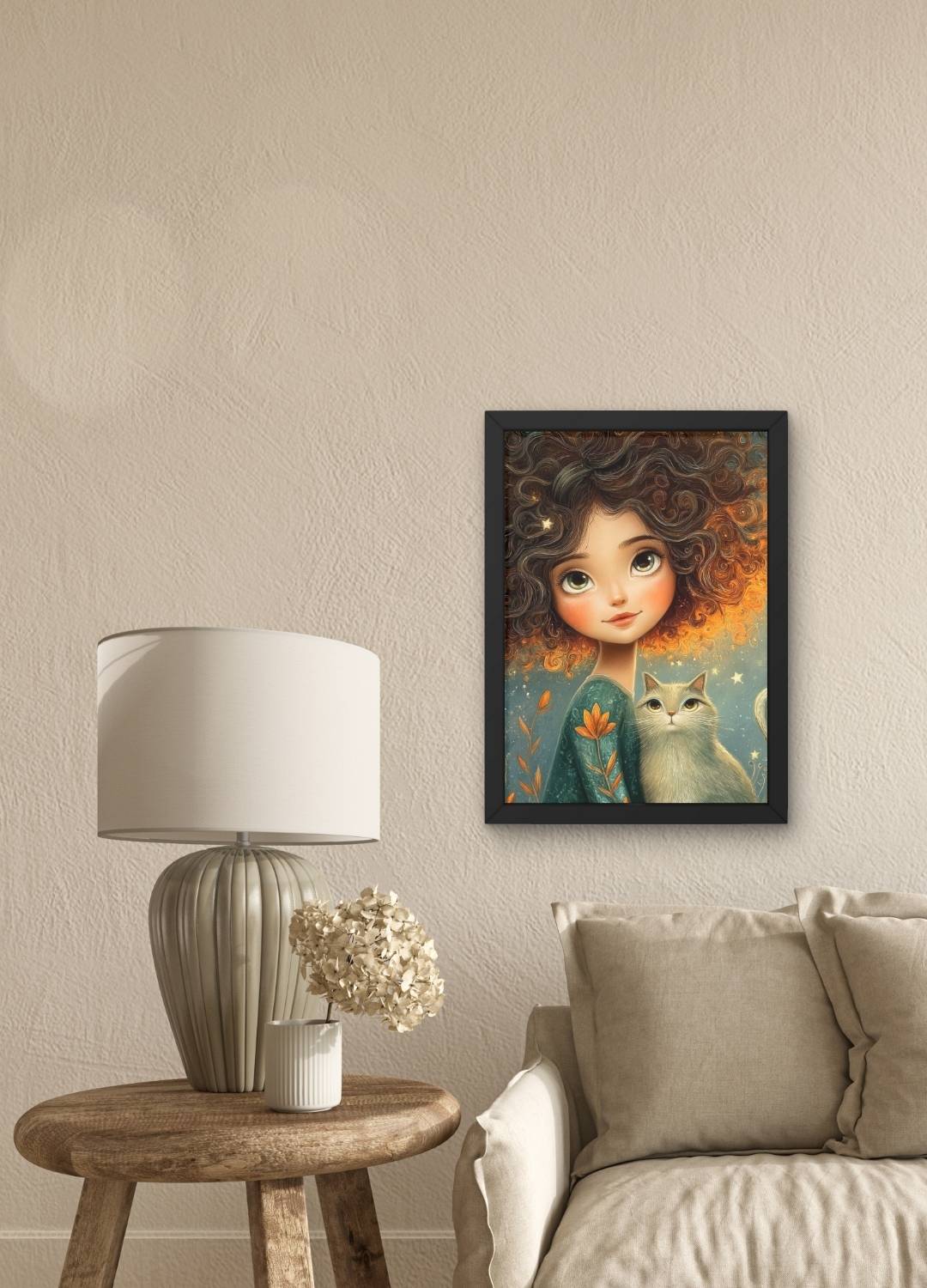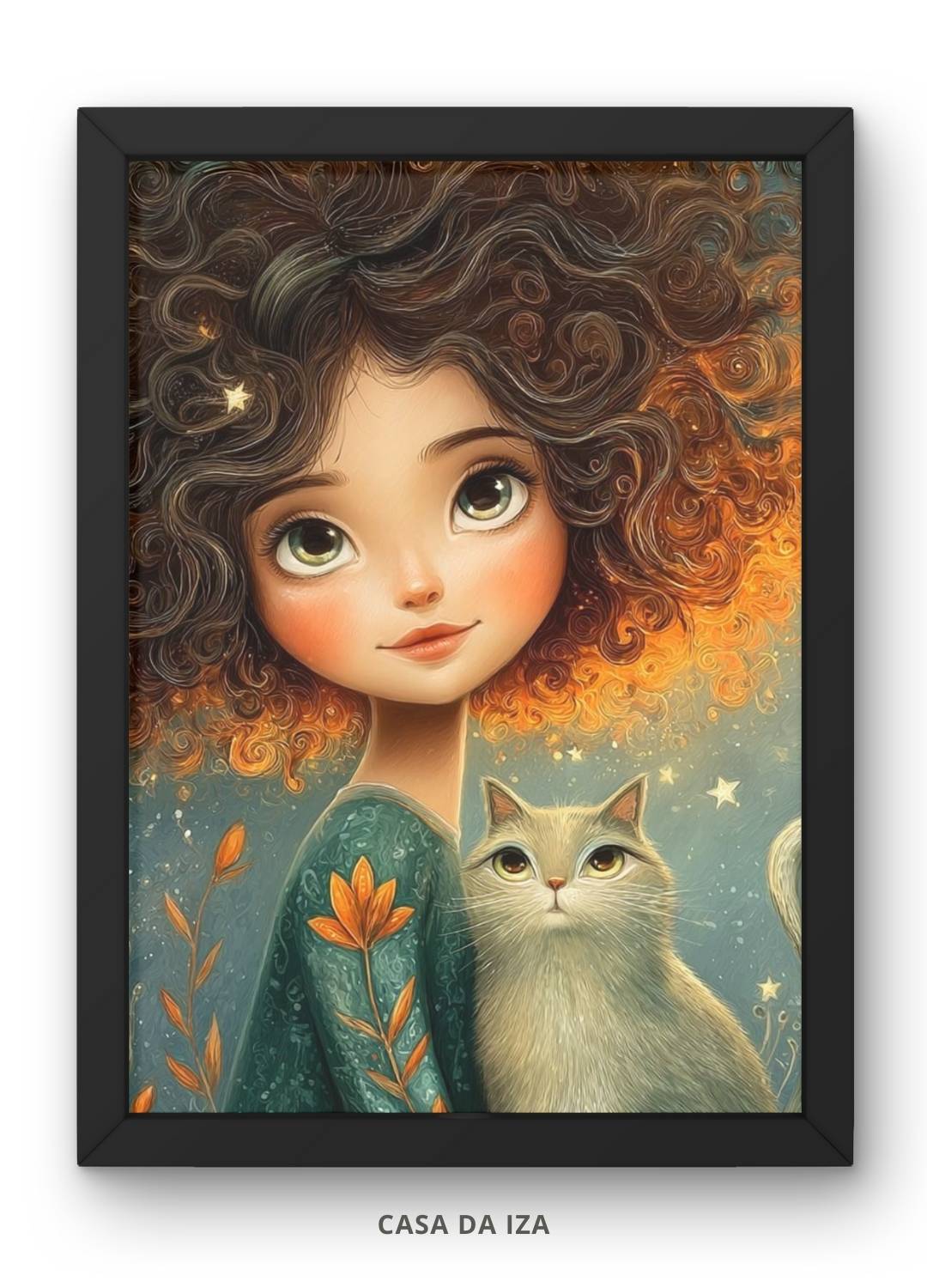 Celebre o laço mágico entre humanos e felinos com este terno Quadro Decorativo Garota e Seu Gato, A pintura retrata uma garota em companhia afetuosa de seu gato, transmitindo cumplicidade, graça e serenidade cotidiana, perfeita para quartos, salas ou ambientes pet-friendly que valorizam a delicadeza e o charme felino na decoração.