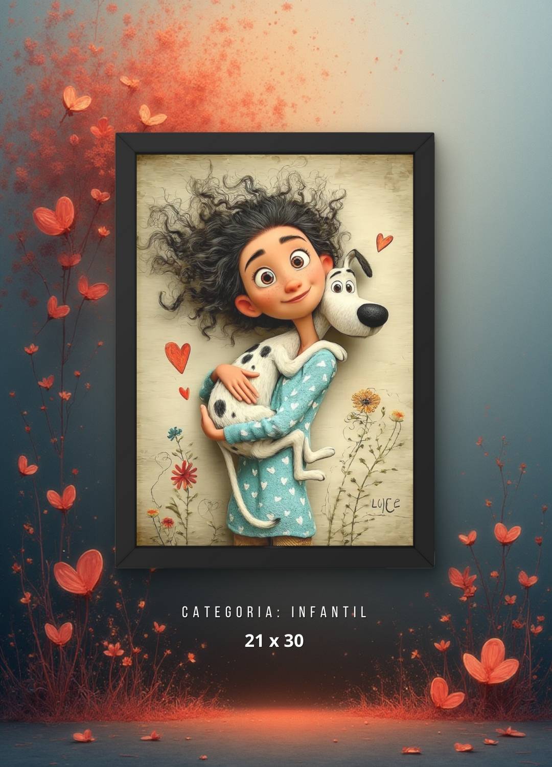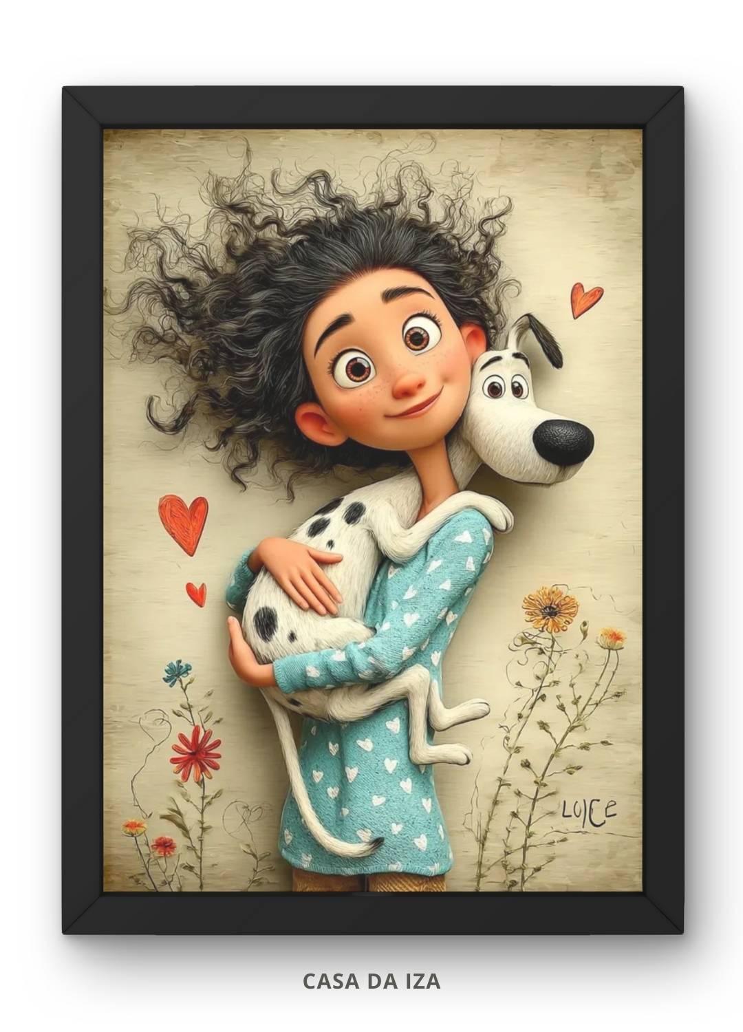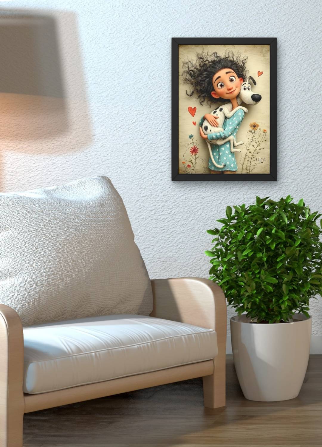 Encante-se com a ternura e a lealdade incondicional neste adorável Quadro Decorativo Garota e Seu Vira-Lata. A pintura captura o laço especial entre uma garota e seu fiel companheiro vira-lata, evocando amizade pura, simplicidade e alegria cotidiana, ideal para salas, quartos infantis ou espaços pet-friendly que celebram o amor pelos animais.