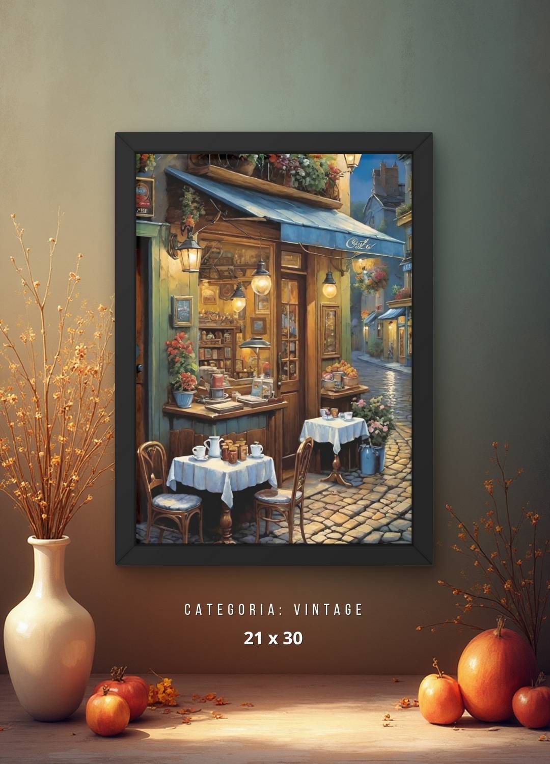 Dê um toque de charme europeu e nostalgia à sua decoração com este elegante Quadro Decorativo Café Europeu Vintage. A pintura captura a atmosfera aconchegante e sofisticada dos cafés clássicos da Europa, remetendo a momentos de lazer, conversa e tradição. Ideal para salas, cozinhas, escritórios ou espaços gourmets que buscam uma decoração retrô com personalidade e estilo.