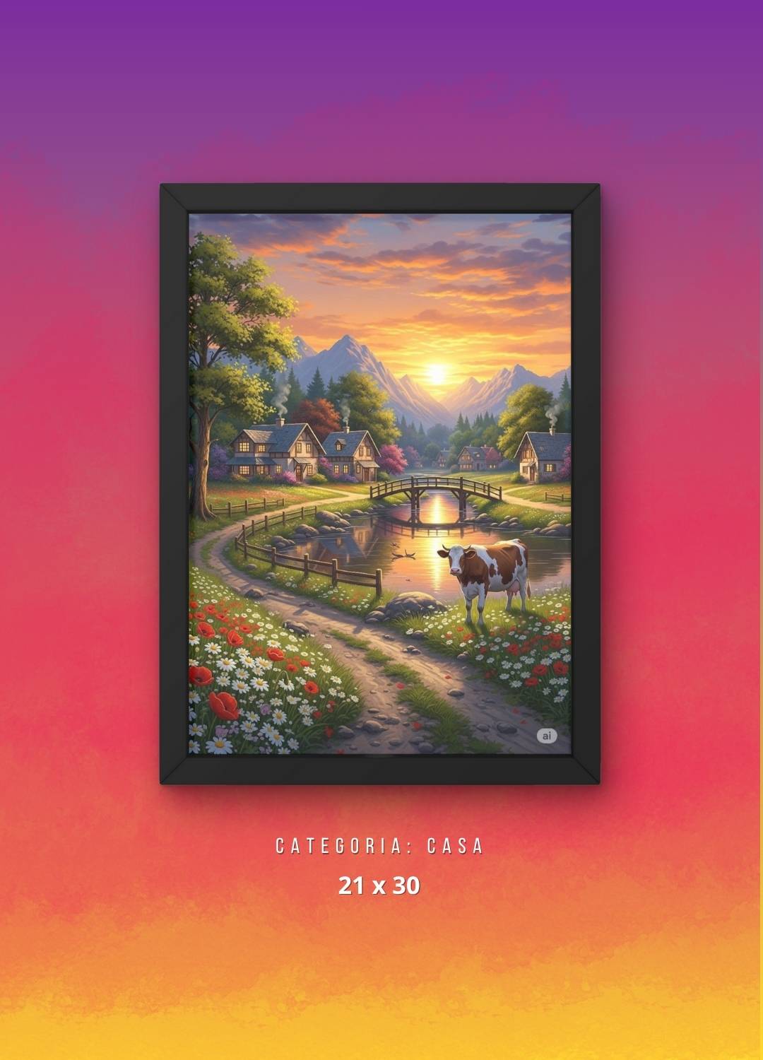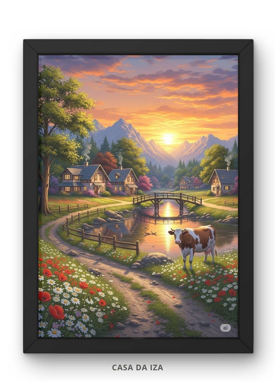 Crie um ambiente aconchegante e cheio de tranquilidade com este elegante Quadro Decorativo Casa nas Montanhas.  Esta pintura captura a beleza serena de uma casa charmosa aninhada em meio às montanhas, transmitindo paz, refúgio e contato com a natureza. Perfeito para salas, quartos, escritórios e espaços que buscam uma decoração rústica, elegante e inspiradora.