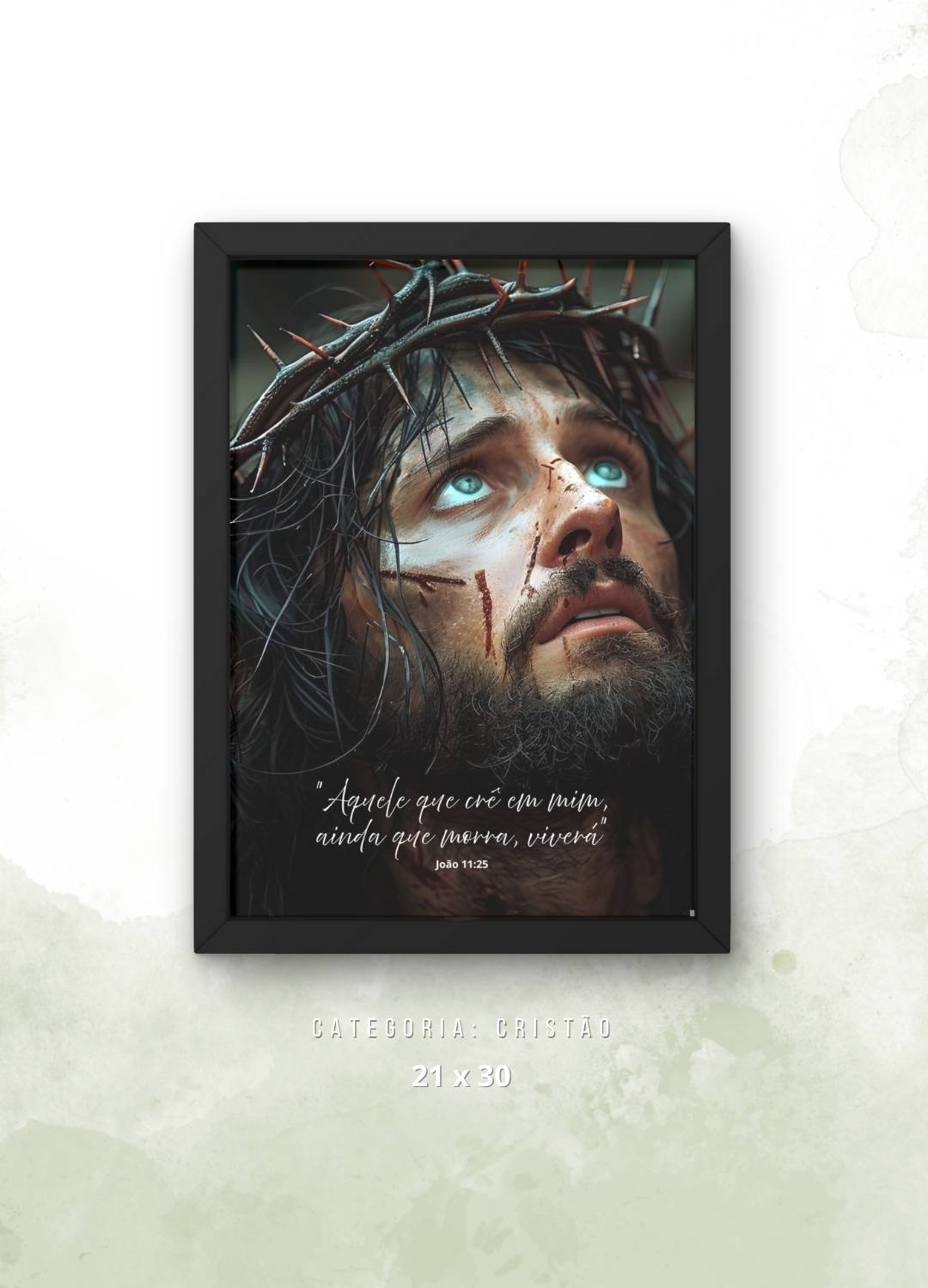 Leve fé e inspiração para sua casa com este belo Quadro Decorativo de Jesus Cristo, A imagem traz a serena figura de Jesus Cristo acompanhada da poderosa frase bíblica: “Aquele que crê em mim, ainda que morra, viverá”, um convite à esperança e à vida eterna. Ideal para ambientes espirituais, salas, quartos ou espaços de reflexão, este quadro é um símbolo de devoção e conforto para o dia a dia.