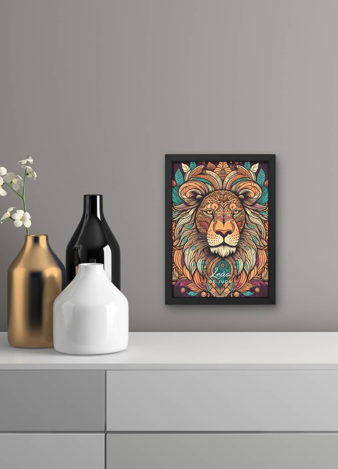 Eleve sua fé e espiritualidade com este poderoso Quadro Decorativo Leão de Judá, que traz uma vibrante interpretação artística do símbolo bíblico do rei e Salvador Jesus Cristo. Um desenho imponente do Leão de Judá em cores sobressalentes, transmitindo força, coragem e realeza divina. Ideal para decoração de espaços espirituais, salas, escritórios ou ambientes que desejam exalar fé, proteção e inspiração através da arte cristã.