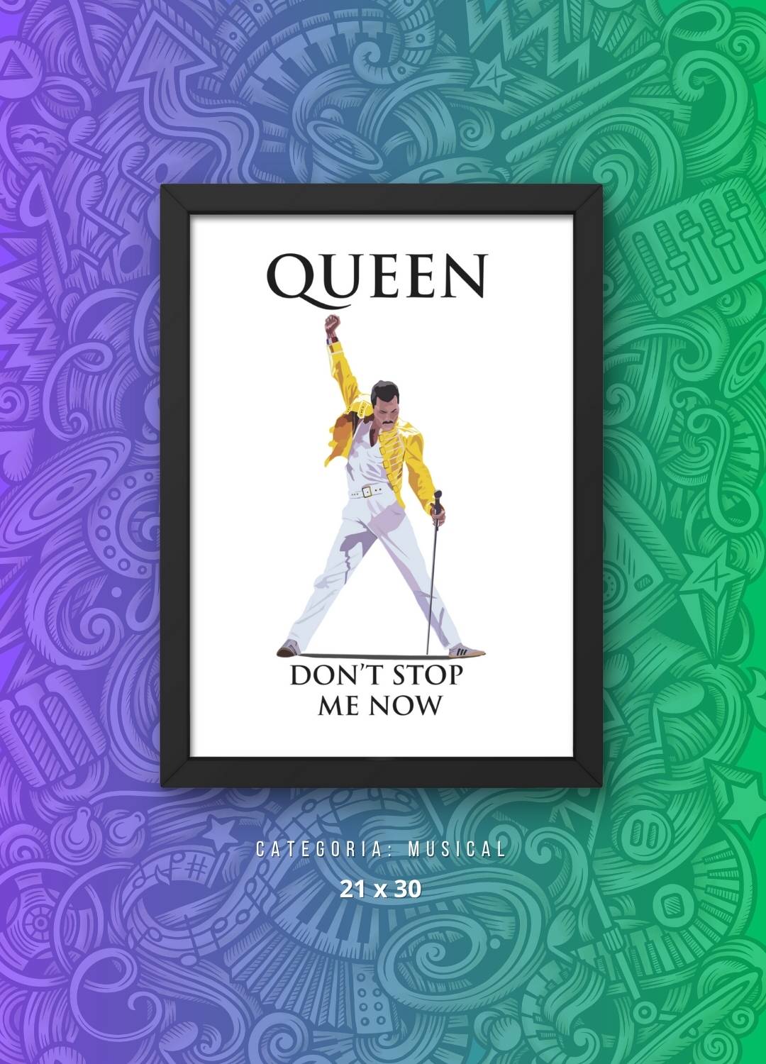 Perfeito para salas, quartos, estúdios, ambientes criativos ou espaços musicais, o quadro Queen transmite personalidade, inspiração e o espírito contagiante do clássico “Don’t Stop Me Now”. Uma peça que une arte, música e bom gosto para fãs apaixonados e admiradores da decoração temática.